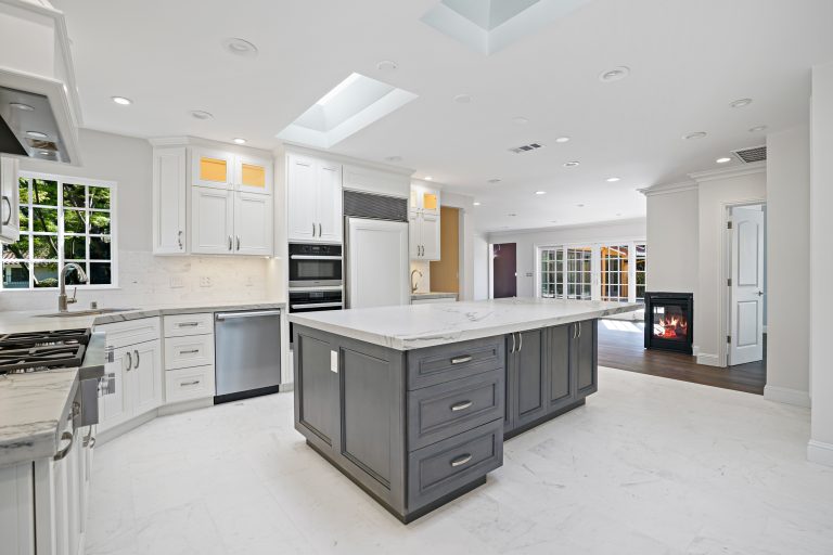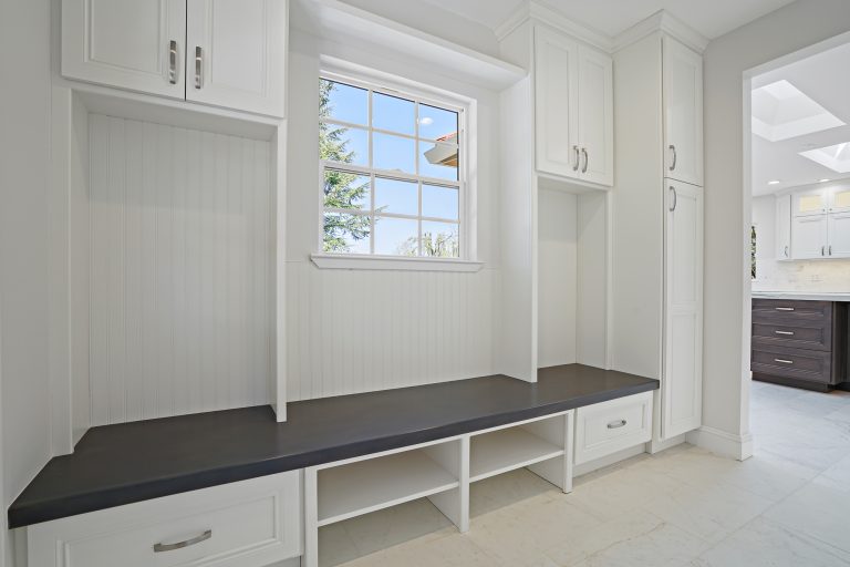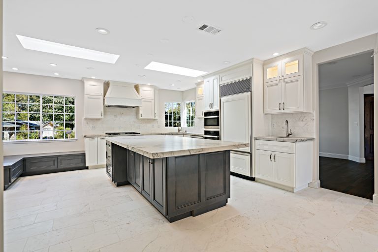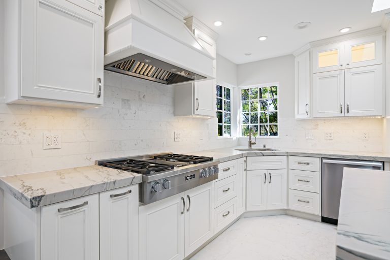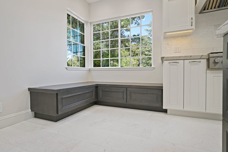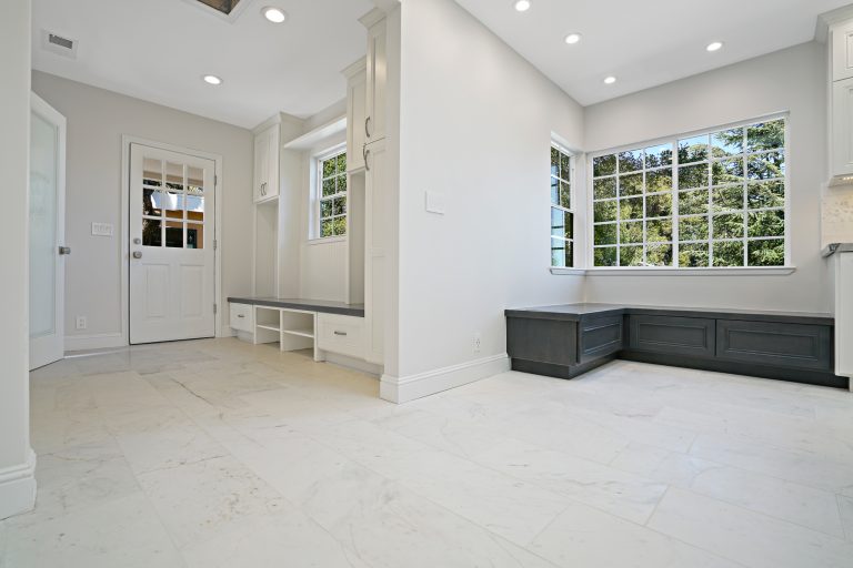 The color in this kitchen really stands out! It has brand new durable wood floors and the white granite countertops add more light to the room. There is lots of cabinet space and the colorful backsplash really adds the room’s character and gives it a modern yet unique finish.